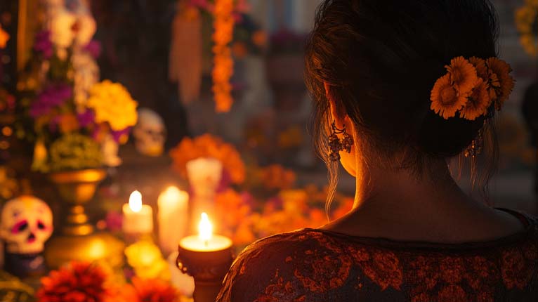 Marialuisa was born in Mexico and, as a young girl, she used to accompany her abuelita to the cemetery to take part in creating altars for Dia de Muertos each year. This tradition is rooted in prehispanic indigenous traditions that survived the conquista. According to this ancient tradition, the veil that separates the world of the living from the world of the dead thins out at this time each year allowing the spirits to leave Mictlán (the otherworld) and join their living family and friends. The ofrendas placed in personalized altars such as the ‘day of the dead bread’ and the smell of the marigold flowers used to decorate them help orient spirits so they can find their families and loved ones who are waiting for them to celebrate and remember the loving memories that connect them.