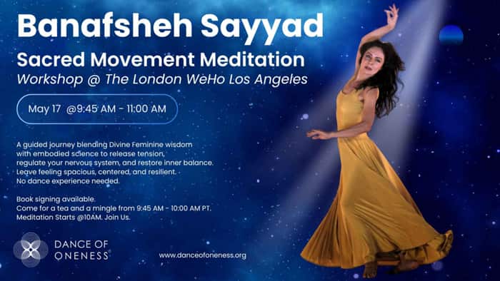 What if you could release stress, restore balance, and awaken your inner joy—all through your body? Join Banafsheh Sayyad, internationally acclaimed sacred dancer, spiritual teacher, and founder of Dance of Oneness®, for Sacred Movement Meditation, an hour-long journey designed to reconnect you with your own presence, resilience, and vitality. Through gentle breathwork, mindful awareness, and accessible [...]